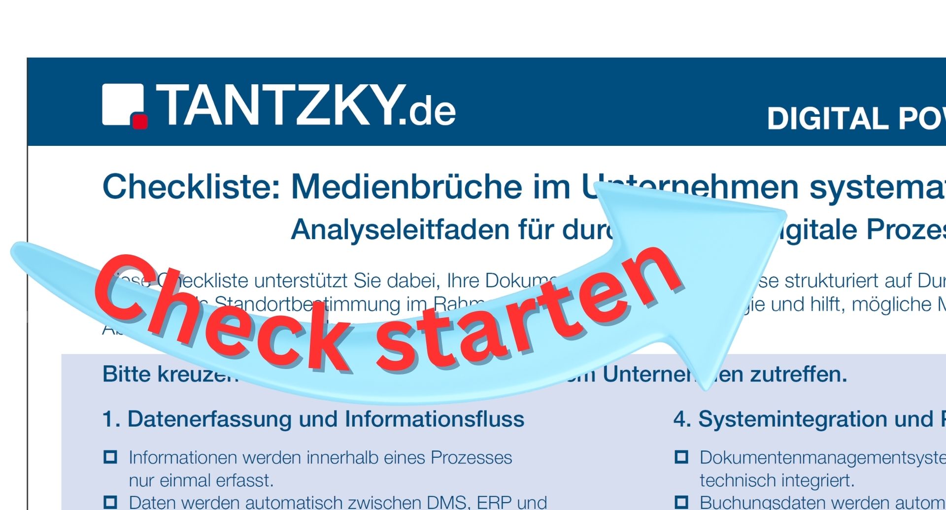 Am Ende dieses Artikels finden Sie eine kompakte Checkliste zur Selbstanalyse – mit der Sie schnell erkennen, ob in Ihren Prozessen vermeidbare Medienbrüche bestehen.