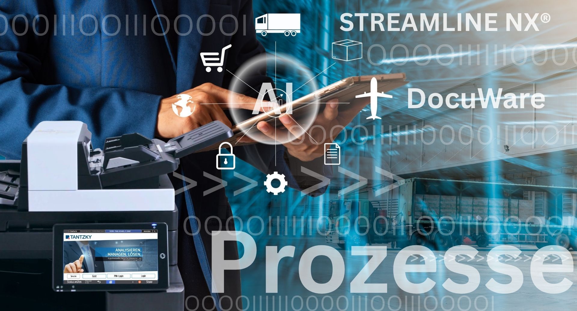 TANTZKY unterstützt Sie dabei, Ihre Dokumentenprozesse ganzheitlich zu digitalisieren – von der Erfassung über die strukturierte Dokumentenlenkung bis zur intelligenten Verarbeitung mit DocuWare KI und der Integration in Ihre ERP-, WMS- oder TMS-Systeme.