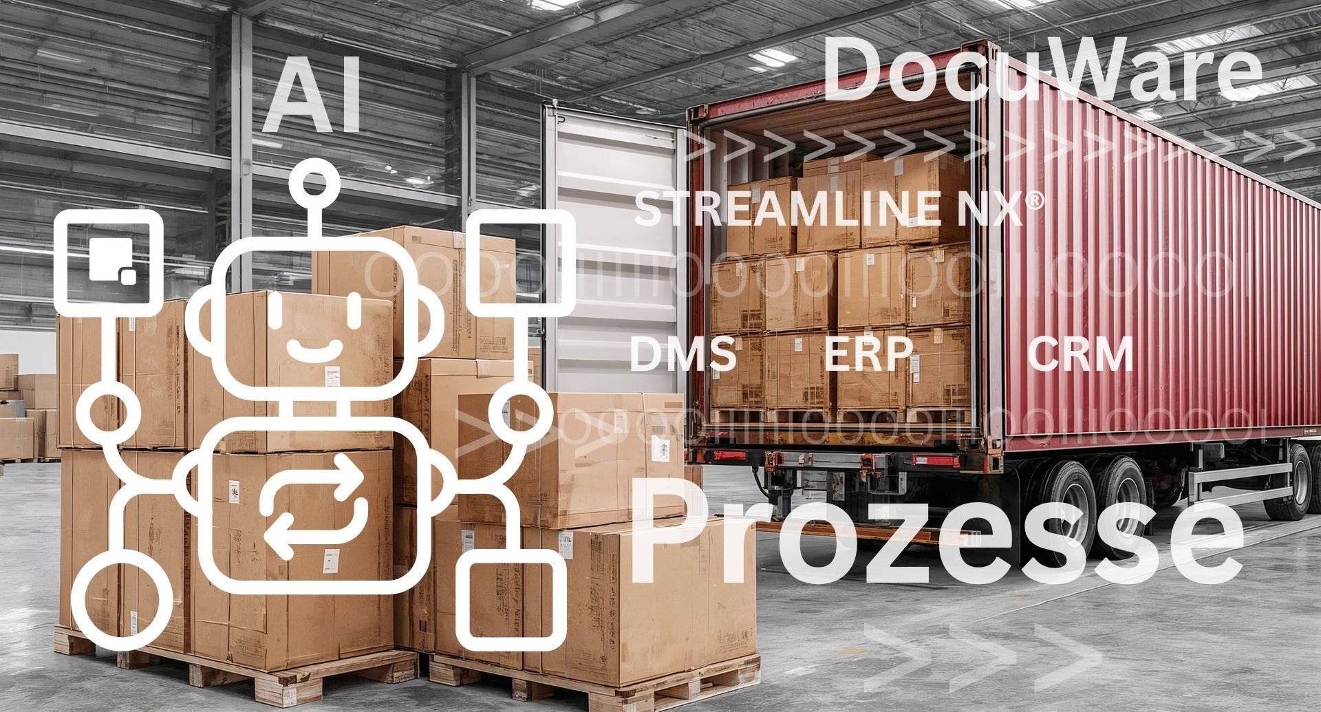 Hier setzen wir mit intelligenter Software, wie z.B. STREAMLINE NX® und DocuWare in Verbindung mit KI an – eingebettet in eine saubere Integrationsarchitektur für ERP-, WMS- und TMS-Systeme.