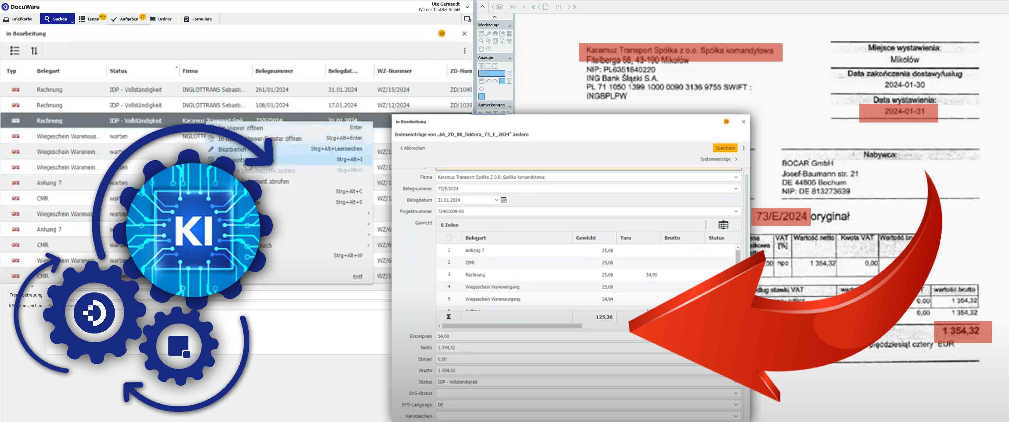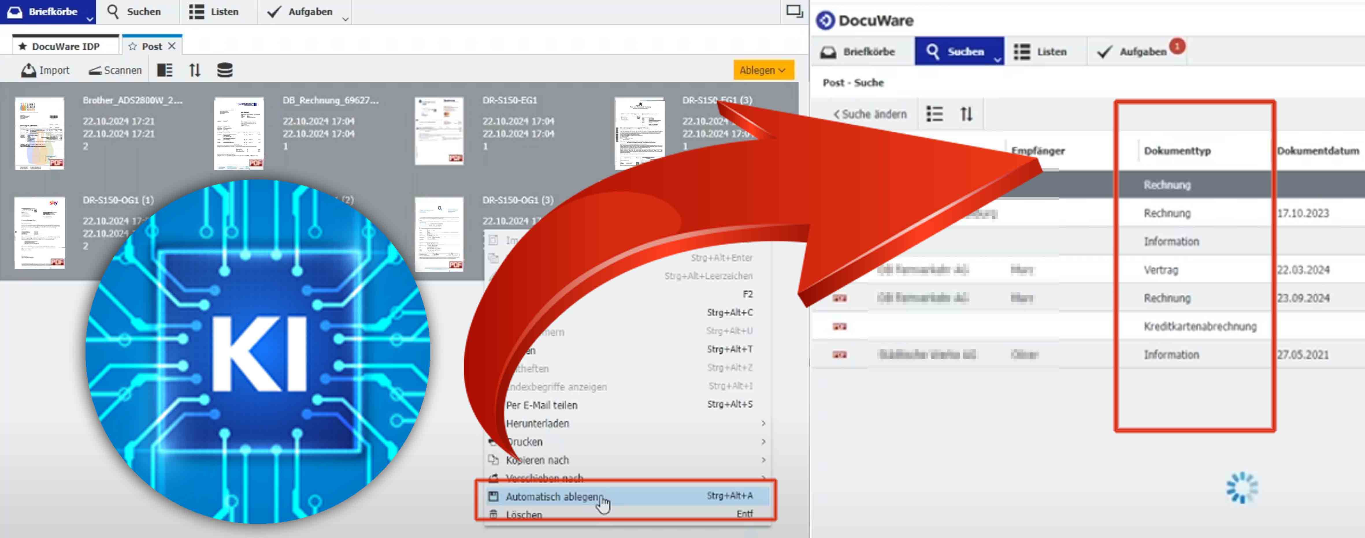 DocuWare DMS mit KI Intelligente Erkennung & Verarbeitung Automatische Klassifizierung, Auslesen & Ablage